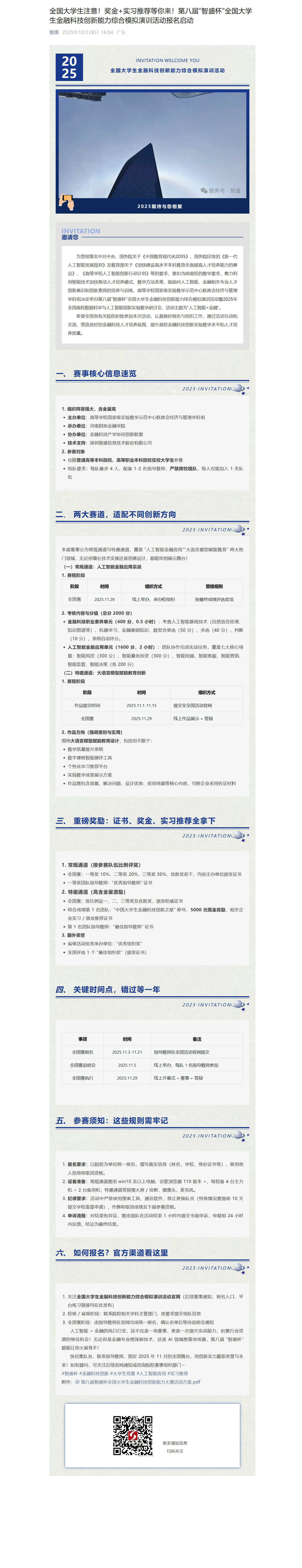 全国大学生注意!奖金+实习推荐等你来!第八届“智盛杯”全国大学生金融科技创新能力大赛报名启动